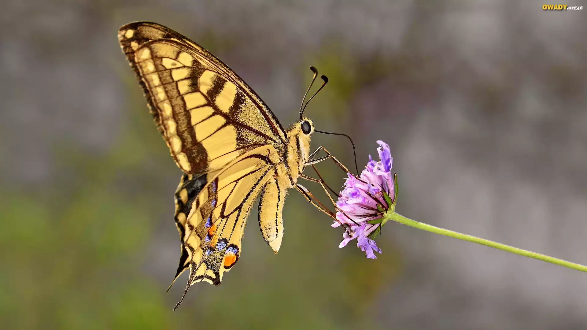 Motyl, Paź królowej, Fioletowy, Kwiatek, Makro