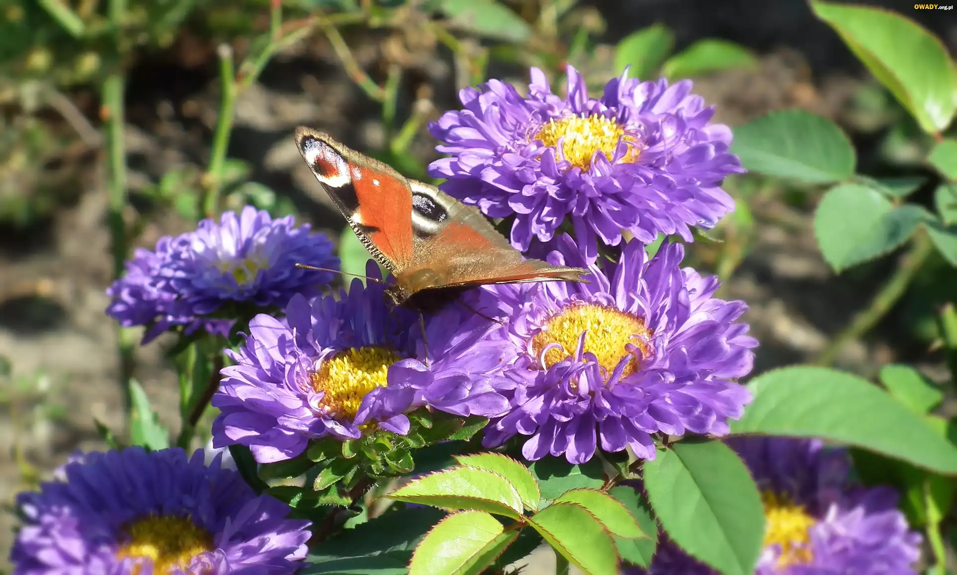 Motyl, Rusałka pawik, Kwiaty, Astry