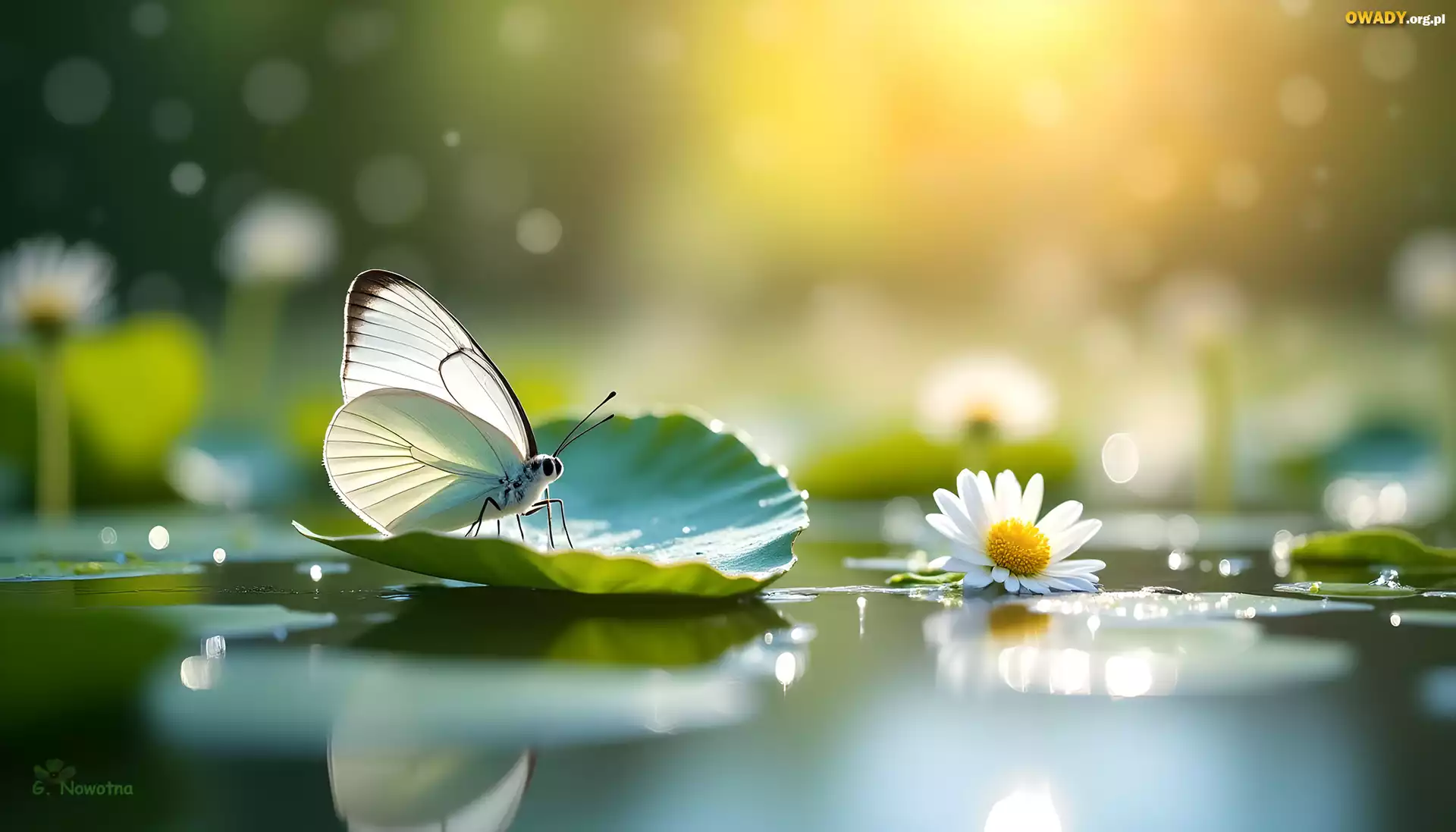 Biały, Motyl, Liść, Biała, Stokrotka