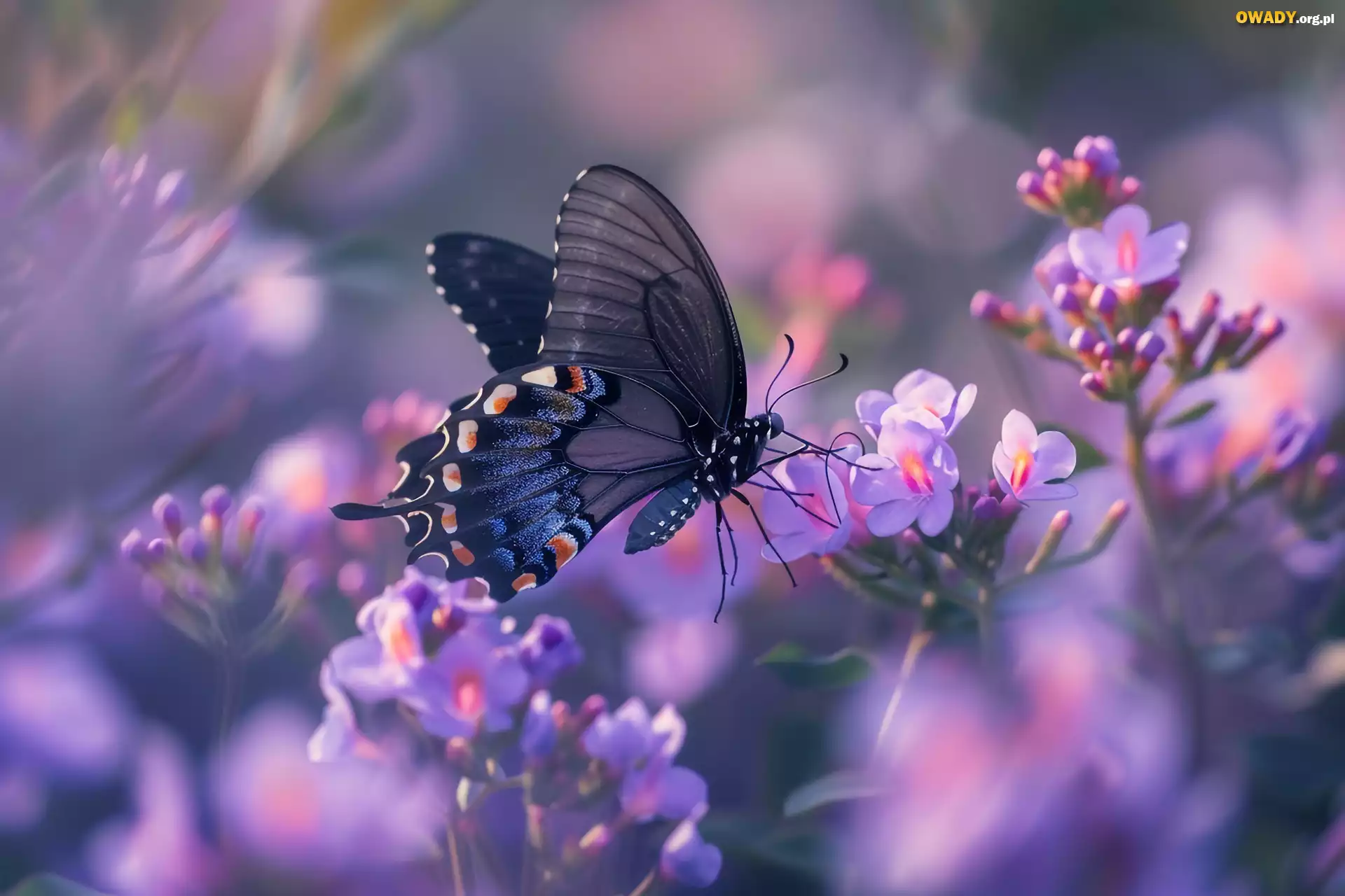 Czerny, Motyl, Purpurowe, Kwiaty, Grafika