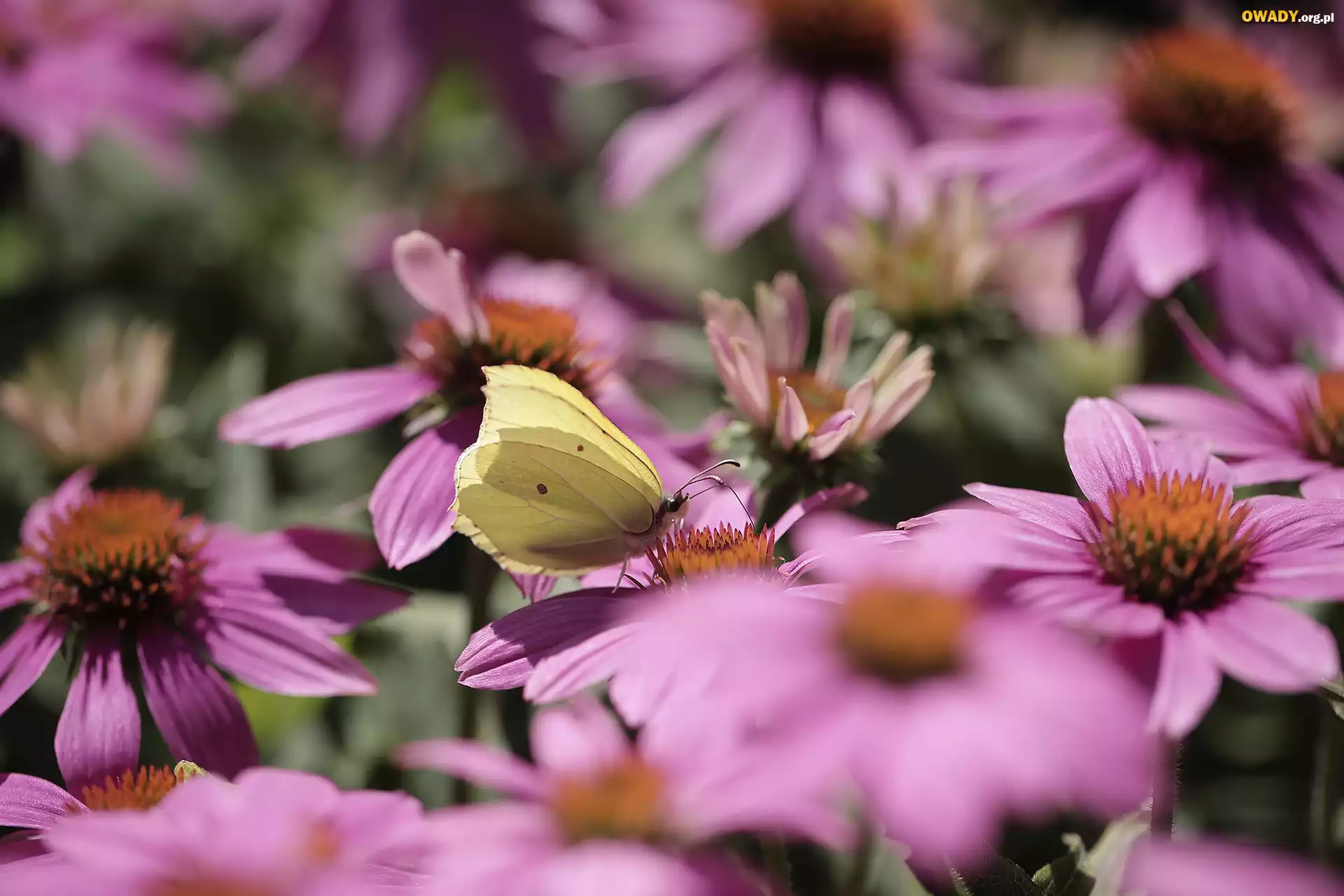 Motyl, Latolistek cytrynek, Różowe, Jeżówki