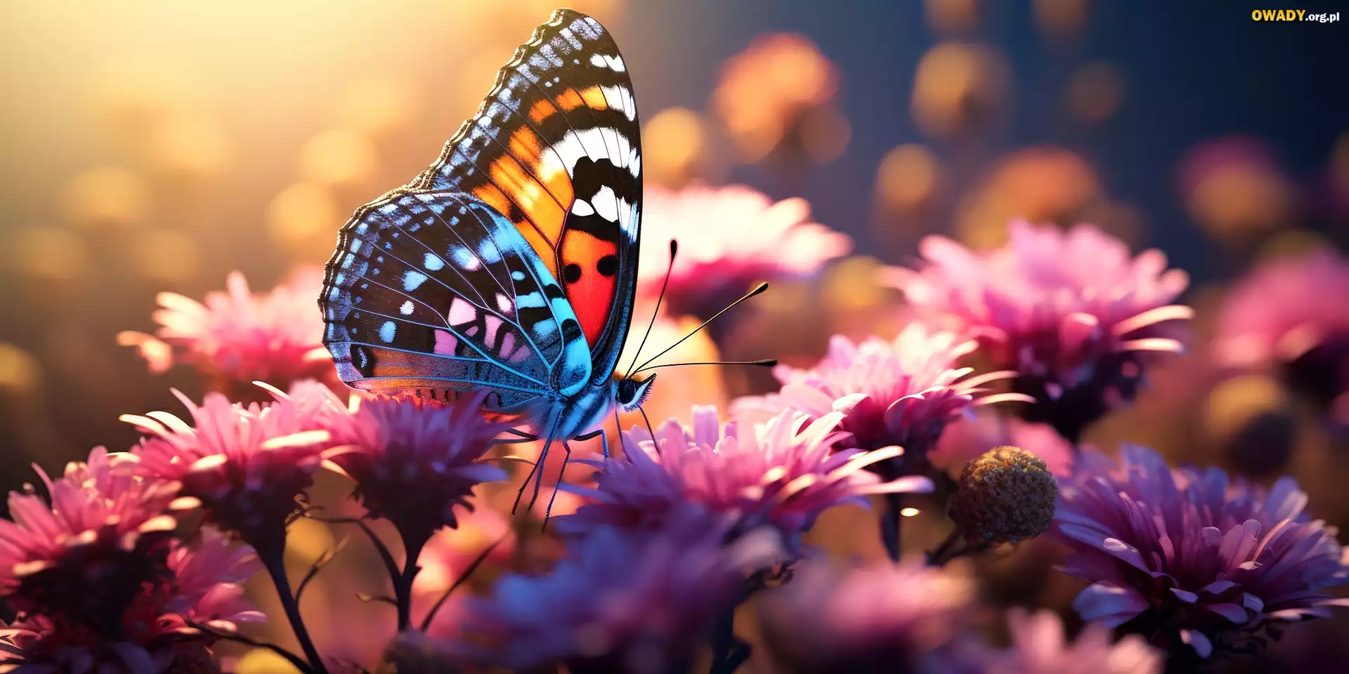 Kolorowy, Motyl, Różowe, Kwiaty, Grafika