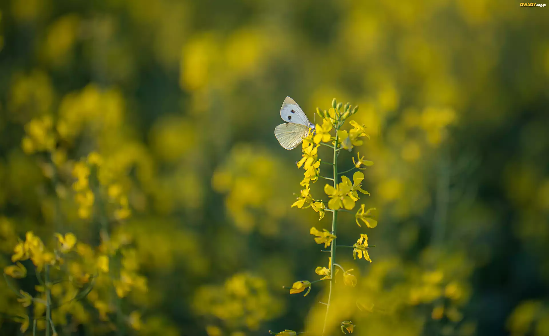 Motyl, Bielinek, Roślina, Rzepak, Rozmycie