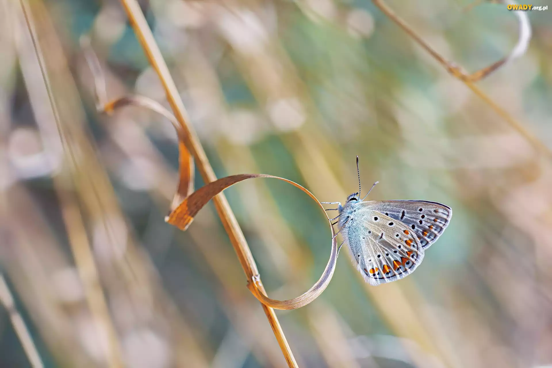 Motyl, Modraszek ikar, Trawa, Źdźbło