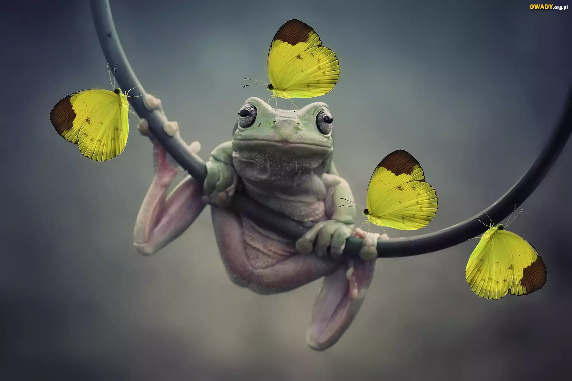 Żaba, Żabka, Żółte, Motyle, Motylki