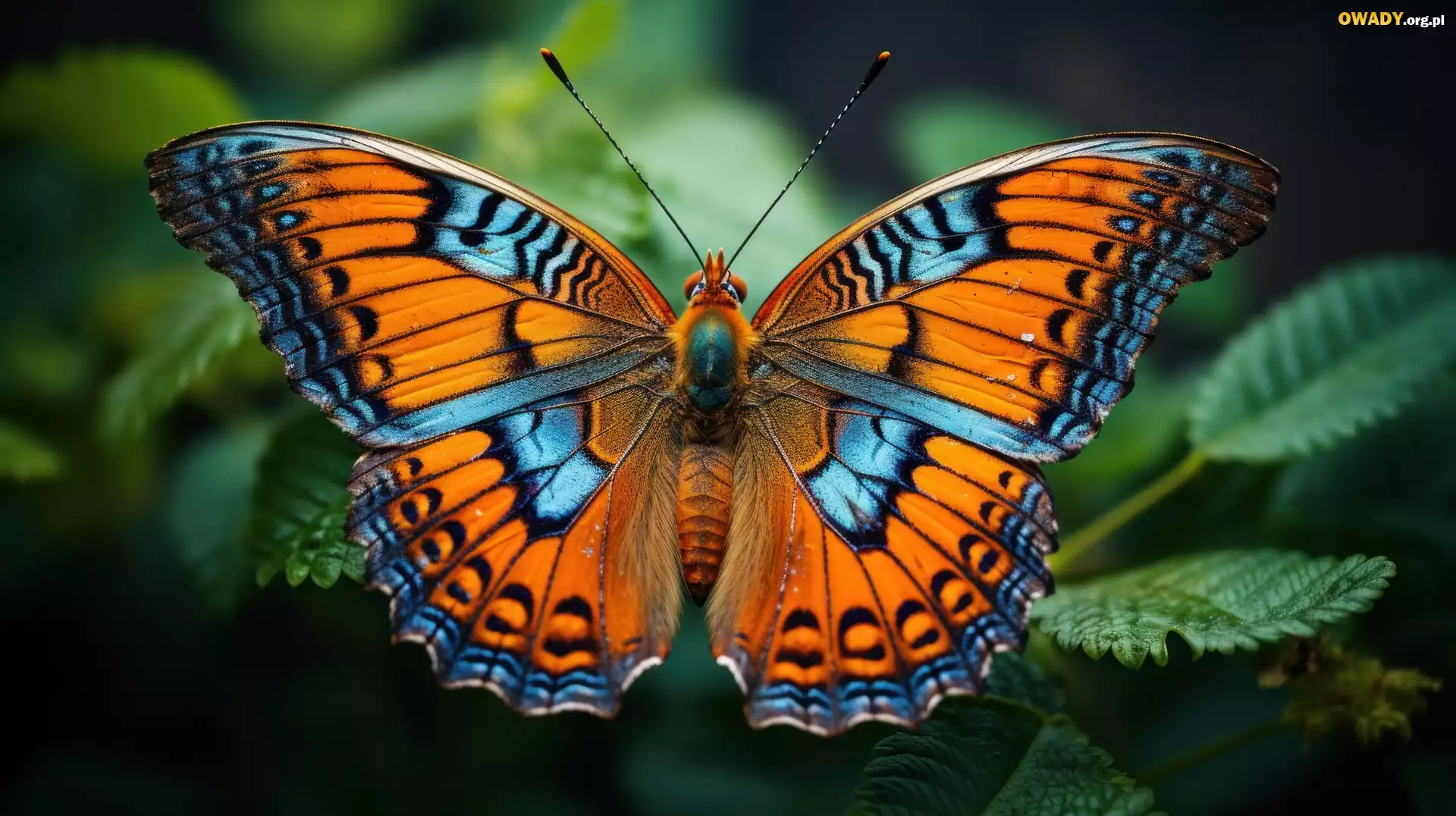 Motyl, Owad, Pomarańczowo-niebieski, Liście, Grafika