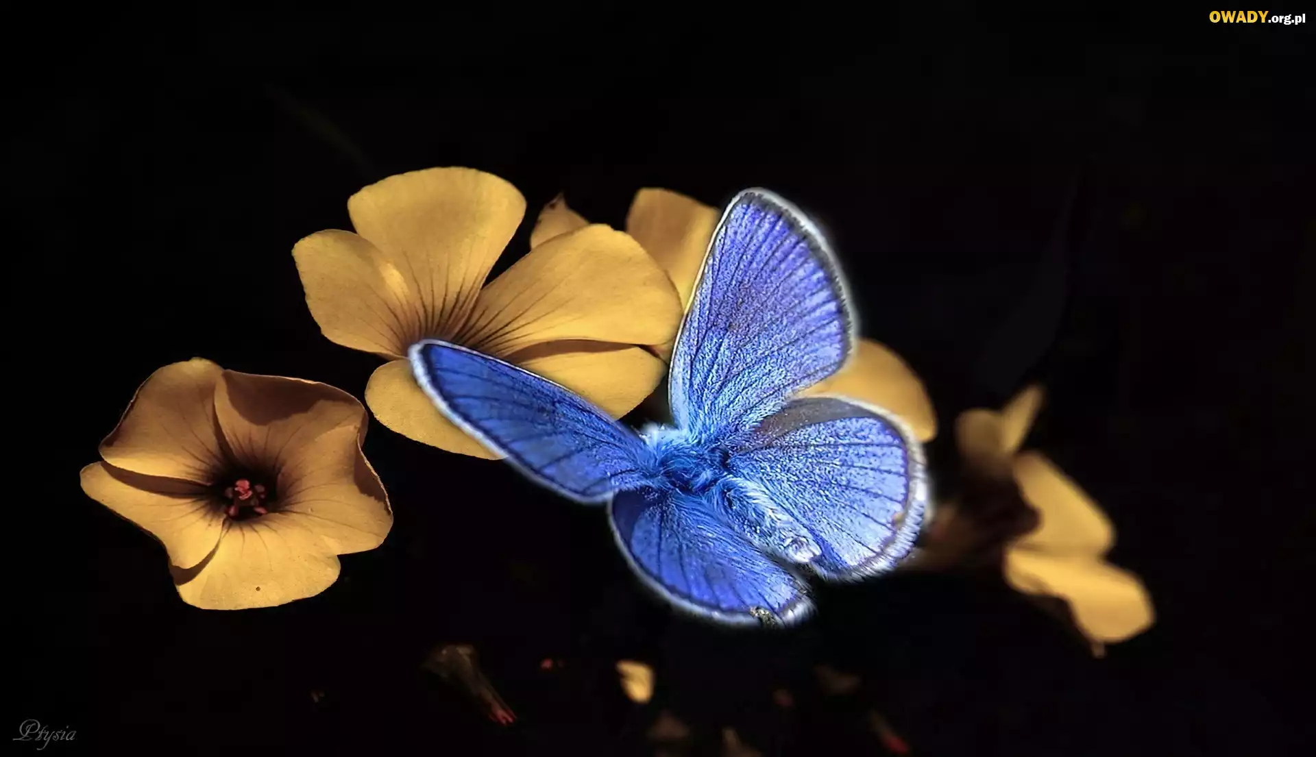 Niebieski, Motyl modraszek, Żółte, Kwiatki