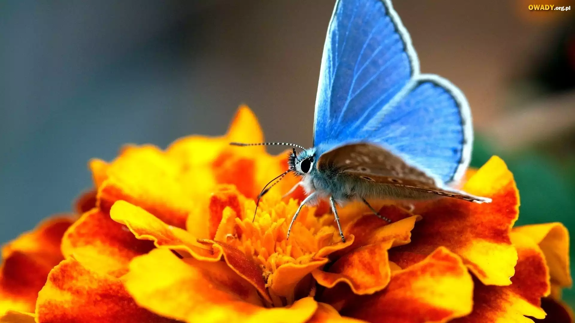 Niebieski, Motyl, Modraszek ikar, Kwiat, Cynia