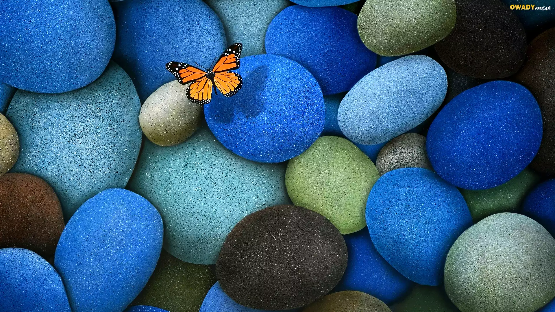 Niebieskie ,Szare, Brązowe, Kamienie, Pomarańczowy, Motyl, Monarch