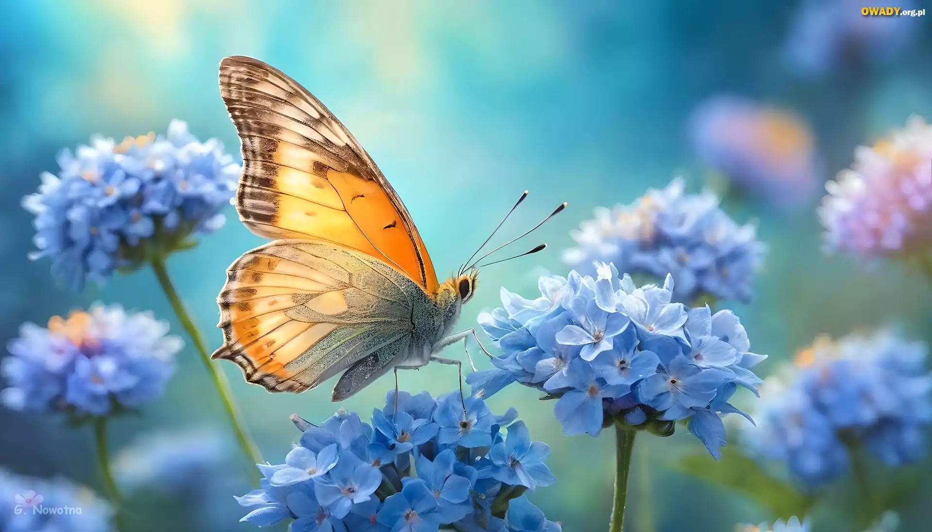 Motyl, Owad, Niebieskie, Kwiaty, Grafika