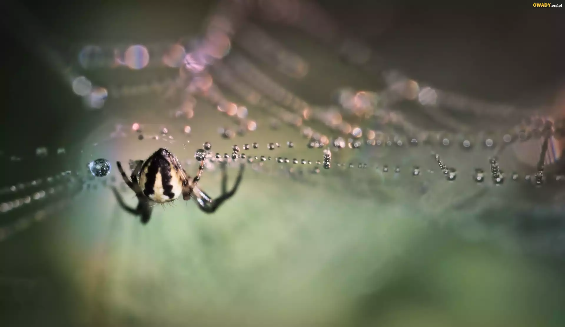 Pająk, Pajęczyna, Krople, Bokeh
