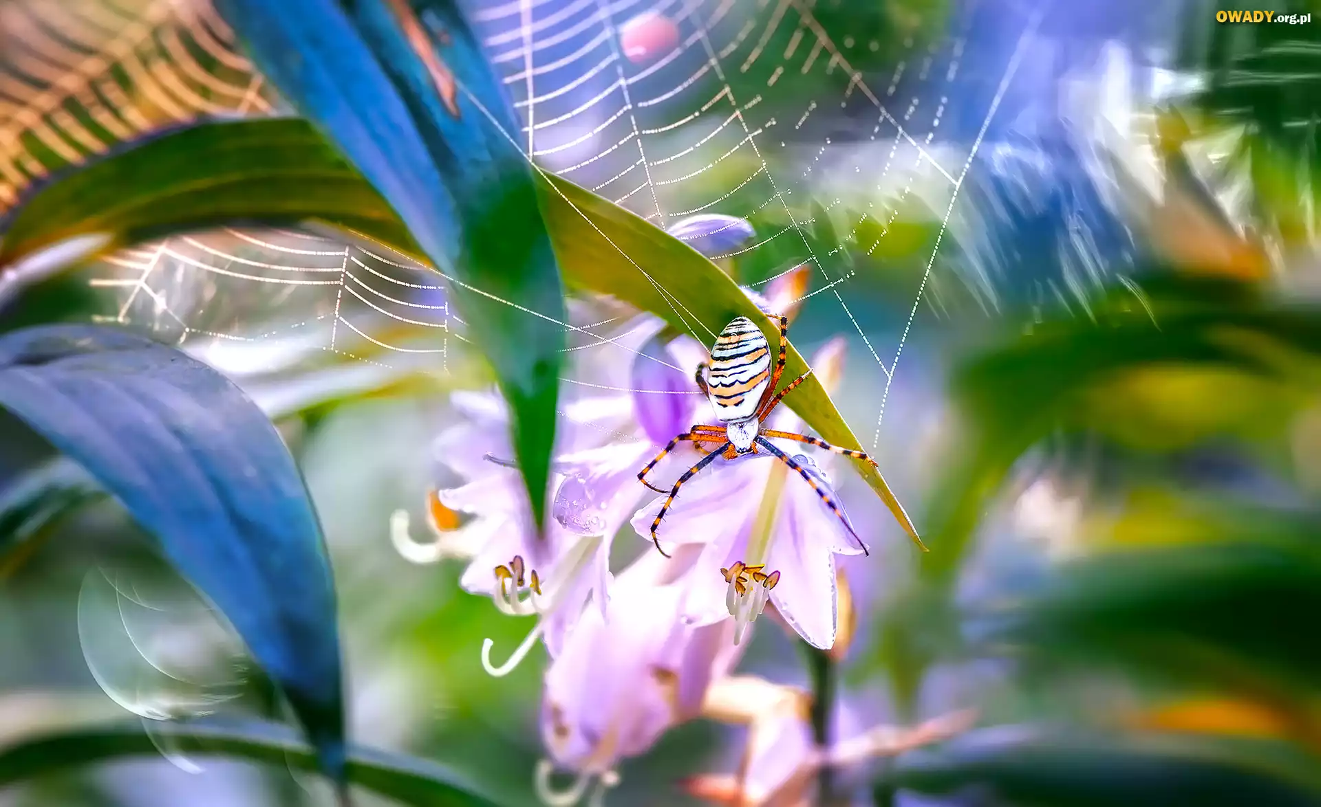 Pająk, Pajęczyna, Kwiaty, Makro