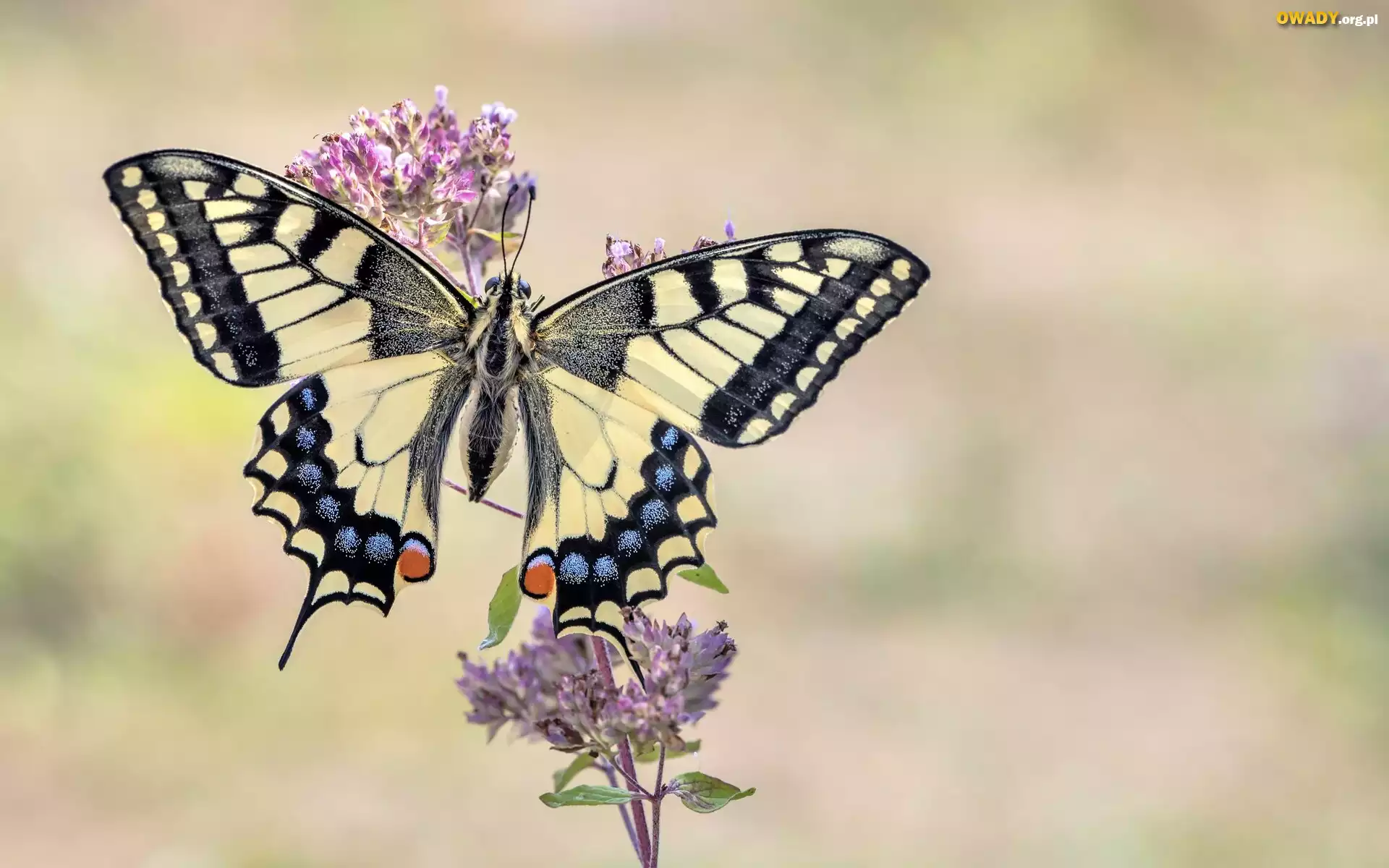 Motyl, Paź królowej, Kwiaty, Gałązka