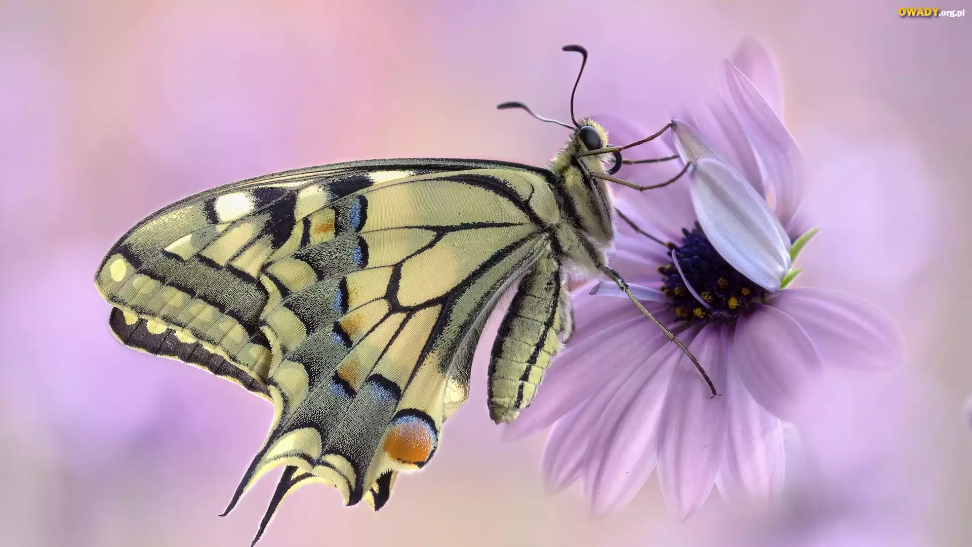 Motyl, Paź królowej, Kwiat, Stokrotka afrykańska, Makro