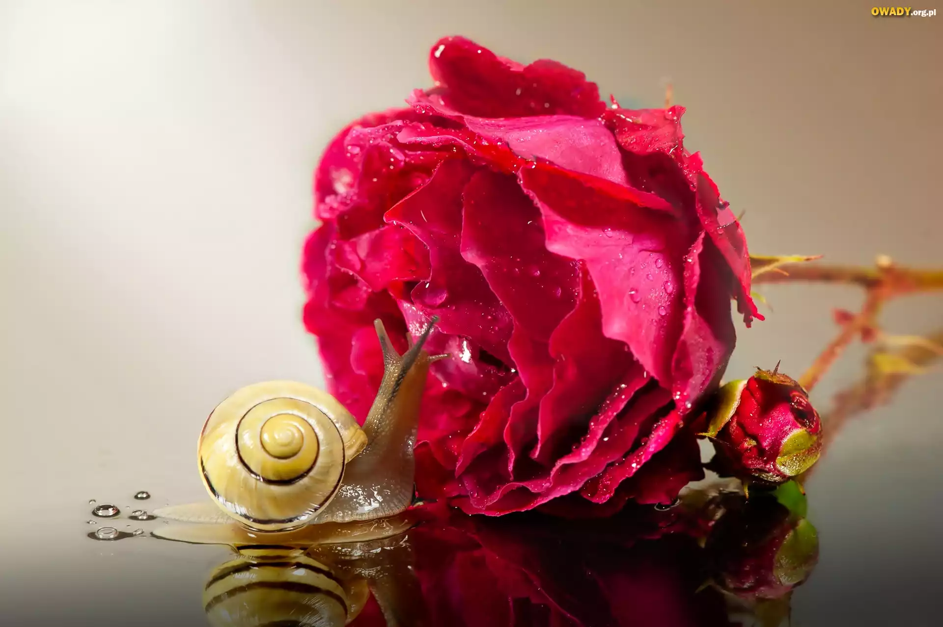 Ślimak, Czerwona, Róża, Krople