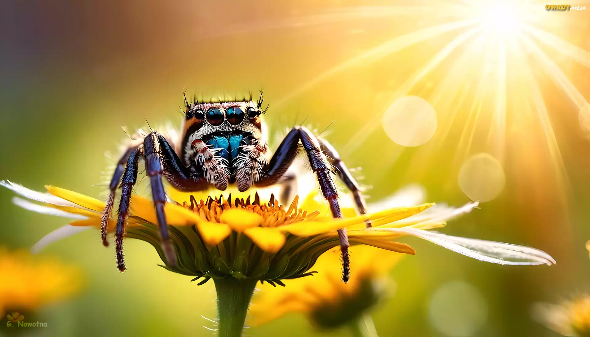 Pająk, Skakun, Żółty, Kwiat, Grafika