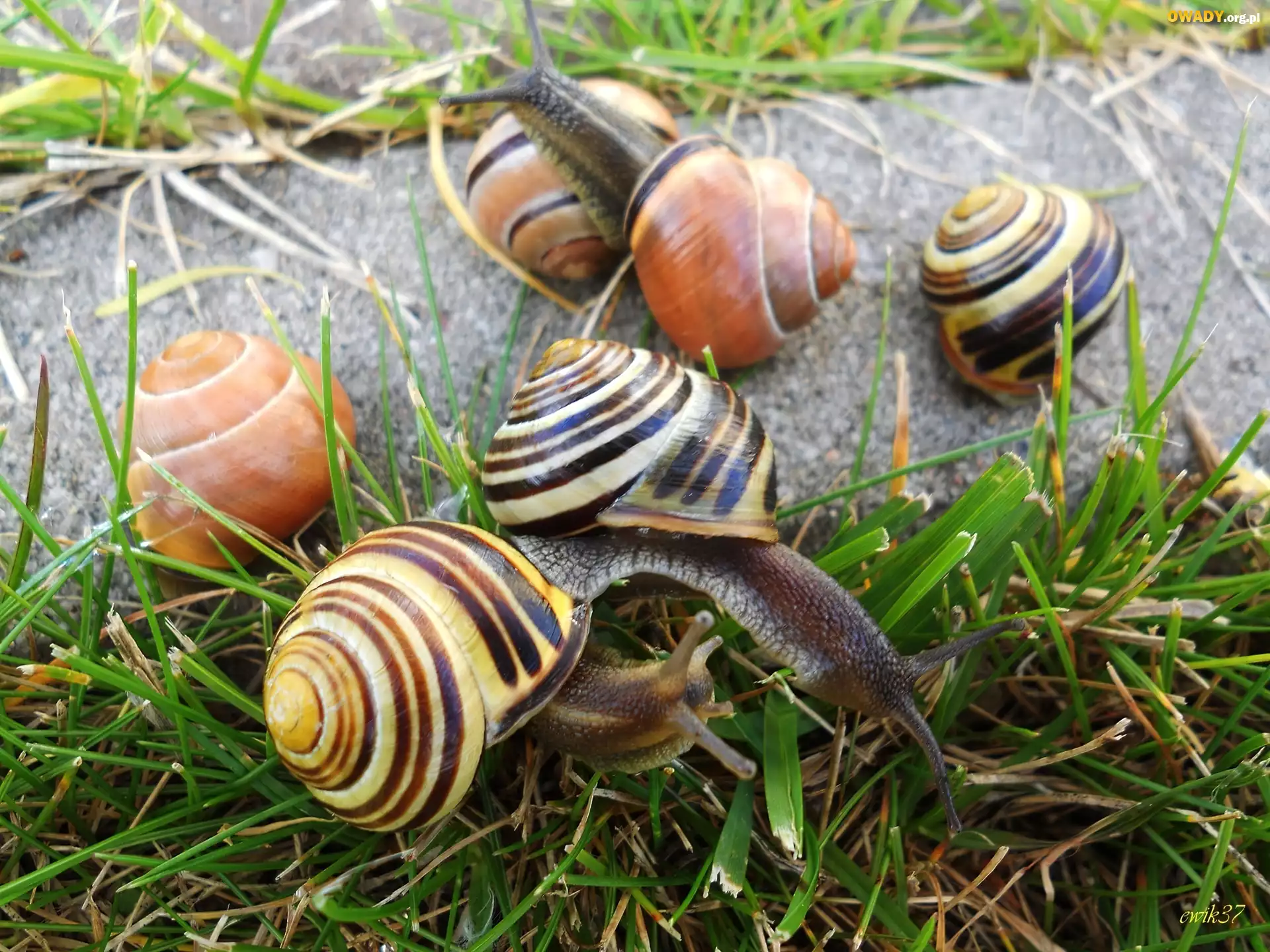 Sześć, Ślimaków, Trawa, Chodnik
