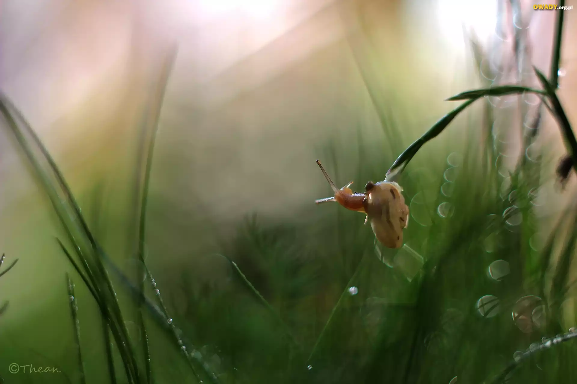 Ślimak, Źdźbła, Trawa, Bokeh