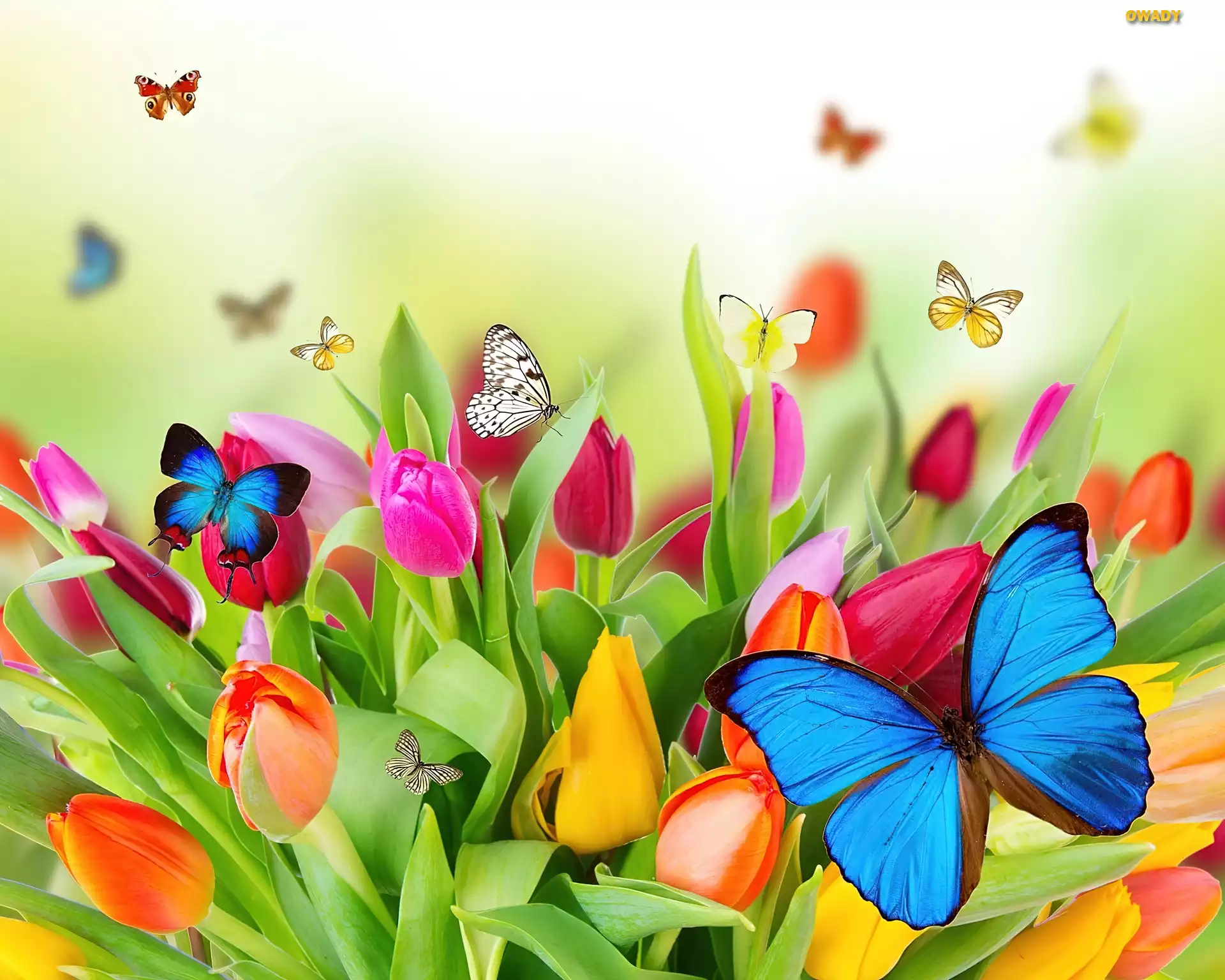 Kolorowe, Tulipany, Motyle