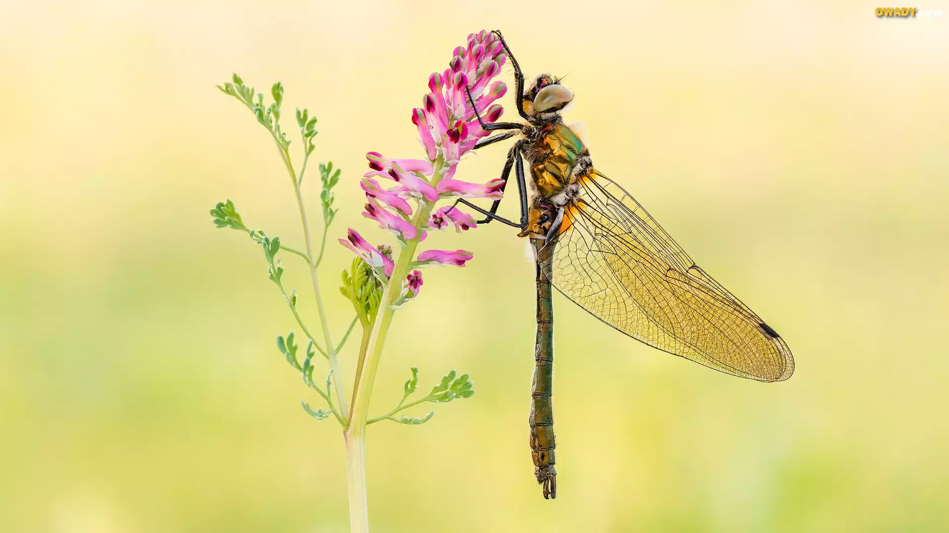 Ważka, Kwiat, Różowy, Makro