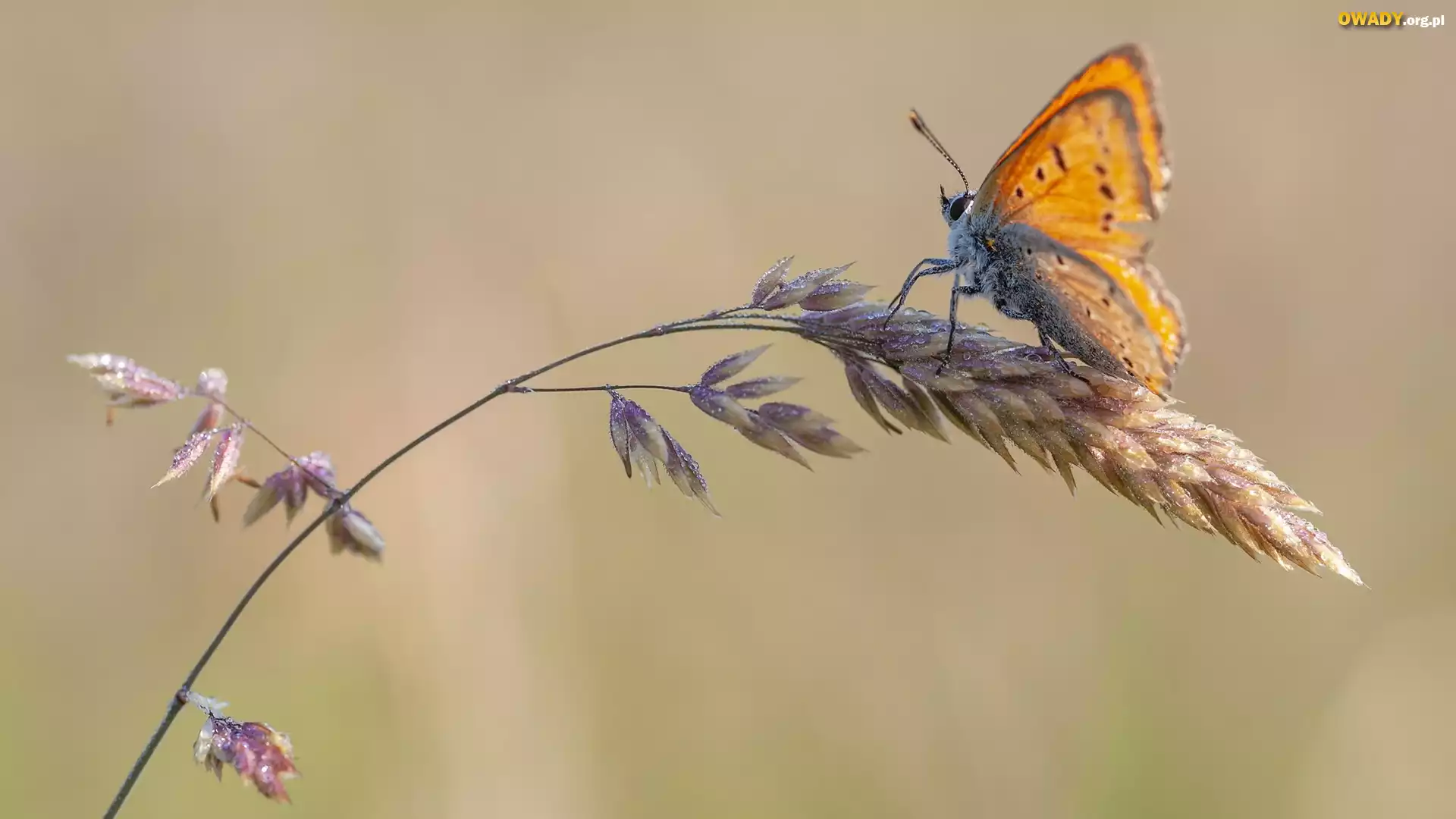 Motyl, Czerwończyk, Trawa, Źdźbło